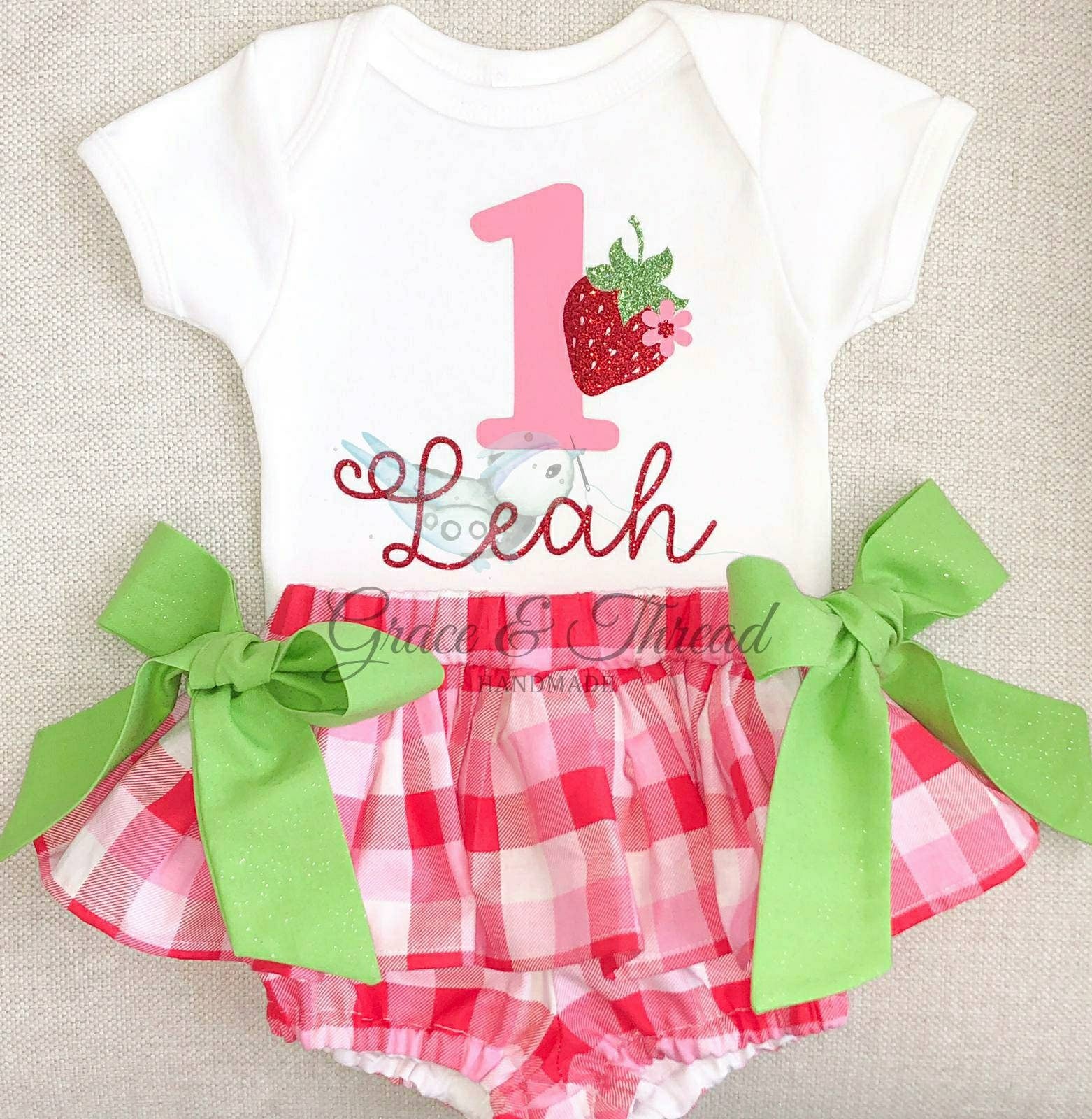 Strawberry shortcake Skirted bloomers,Green bow,bloomers,birthday outfit,lime green,bummies,girl skirt,Baby outfit,Red and Pink plaid,girly