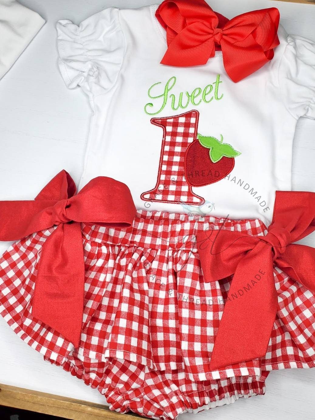LISTING DOES NOT INCLUDE : Matching strawberry plaid skirted Bloomer, add to your order.👇